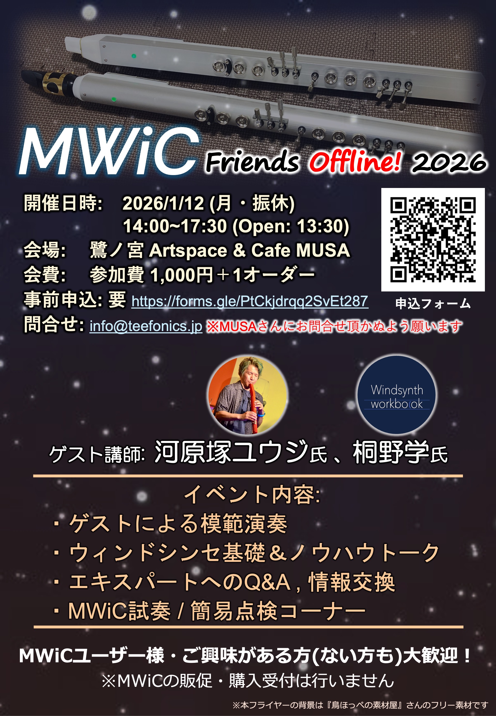 - 2025/12/28: (申込み開始予定お知らせ)2026年第1期のMWiC本体ご購入申込み受付けを2026/1/17(土)に開始致します!